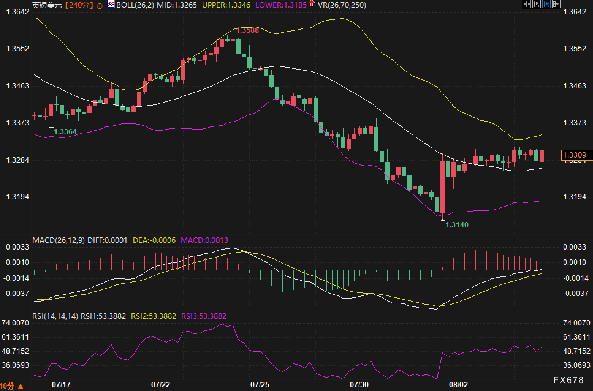 当前市场情绪偏谨慎观望,汇价围绕1.3300心理关口反复拉锯,显示多空双方均缺乏足够信心主动发起攻击。美元方面,由于特朗普即将公布的重要人事任命,以及对9月降息的高度预期,美元指数持续在低位徘徊,对英镑构成间接支撑。